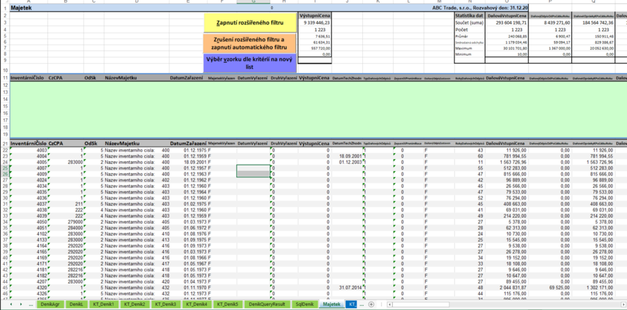 Modul majetku obsahuje detailní přehled majetku se všemi potřebnými informacemi podle jednotlivých inventárních čísel a při jeho převodu z jakéhokoliv účetního systému je automaticky transformován do následující jednotné struktury: