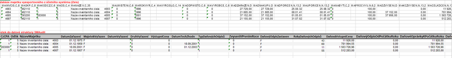 Pro ilustraci převodu dat jsme připravili ukázku evidence majetku z některých účetních systému a evidenci majetku po převodu do struktury systému SWAudit.