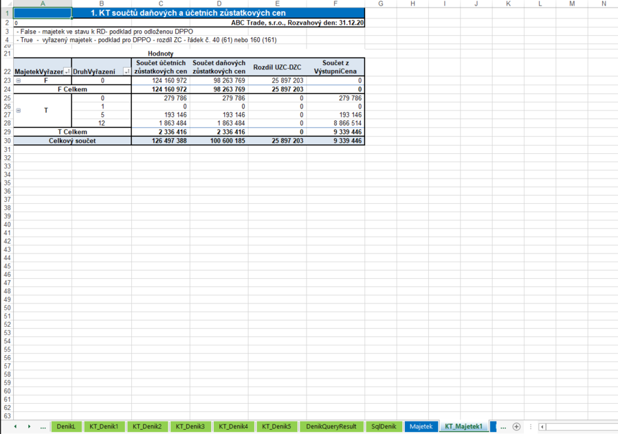 Součty daňových a účetních zůstatkových cen – podklad pro kontrolu