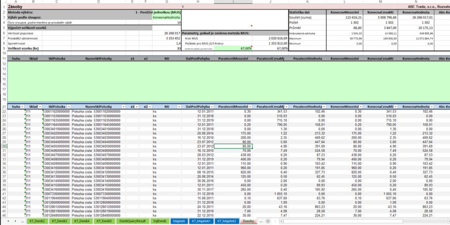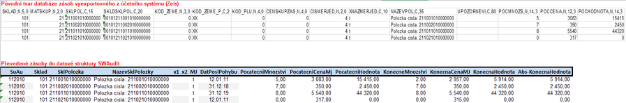Pro ilustraci převodu dat jsme připravili ukázky evidence zásob z některých účetních systému a zásoby po převodu do struktury systému SWAudit.